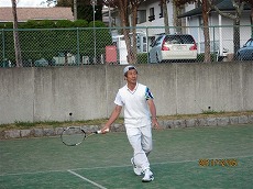 年1回の合宿は、毎週水曜日の午後、品川駅港南口から程近い芝浦中央公園テニスコートで積み重ねてきた練習の成果のみせどころである。