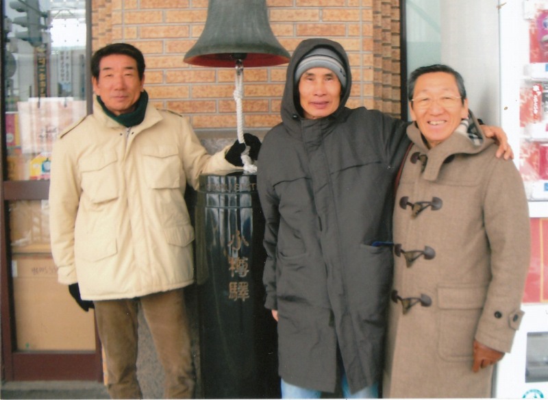 JR小樽駅前での3名(左から寺本、尾藤、前田)