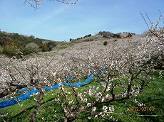 料金所までは地元の産品が所狭しと並び、県外からの見物客で賑わう中、私達は入園料250円で、一周4kmの一番長いコースを散策です。桜のように派手さはありませんが、じゅうたんを敷き詰めたようなピンクの梅畑は「一目百万、香り十里」にふさわしい景観と香りでした。