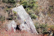 幕山梅林は寒い日が続いていたため殆ど開花していない。梅林の遠く斜面に岩登りの訓練をしている人が見える。いつものようではないが結構人が来ていた。