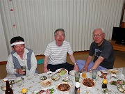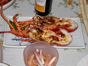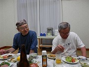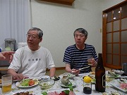 ・今回はY氏の喜寿祝いを兼ねての釣り行。2日目に祝い用の真鯛を釣ろうと、地元釣り師の手 ほどきを受け、ウキ下10m、ハリス6mの遠投投げ釣りに挑戦したS会長、ハリスが絡まるトラブルが頻発し早々に真鯛ゲットを断念した。しかし、3日目の喜寿祝い宴席にY氏にもっと、もっと長生きしてもらいたいと、下田屋の女将さんから伊勢海老の焼き料理がサービスで提供された。 これには一同感謝感激。旨い旨いとY氏1匹丸ごと完食。