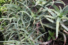 ○ アロエは多肉植物で昔から「医者要らず」と言われ、便秘や胃痛や傷や火傷に効能がある。栽培し易く、切って土に挿すだけでよい。大きくなると冬には真っ赤な筒状の花を咲かす。また雪には弱く、葉に積雪した場合は水をかけるか雪を落とす処置が必要である。利用方法としては各種CMで報道されているように、化粧品、アロエ酒、アロエジュース等がある。