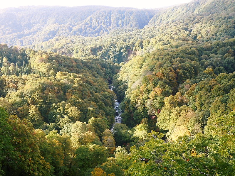 高さ122mの城ヶ倉大橋からは、鬱蒼とした八甲田山系の原生林が連綿と横たわります。