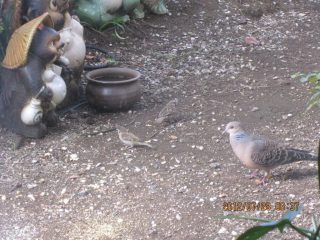 妻は朝一番に雀らに餌を与える。雀とキジ鳩にパン屑、山雀と四十雀にヒマワリの種、冬には目白とヒヨ鳥への蜜柑が加わる。最初は数羽だった雀も二十羽ほどに増え、キジ鳩の夫婦も来るようになった。