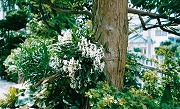又庭の槙の木を宿り木とさせた「風蘭」も満開となり、芳香を発散させています。