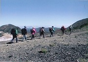 大雪山の最高峰 旭岳2290m頂上からの遠望は雄大そのもの。遠くトムラウシ山や十勝岳が私たちを招いていました。旭岳から熊の岳との鞍部を裾合い平へと下りロープウエーの終着駅に辿りついたときにはそろそろ夕暮れも迫るころでした。