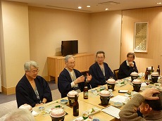 また、その後1部屋に全員が集合しても、御酒を飲みながら2時間以上、講話の質疑や談話が続きましたが、最近、経済が少し上向いて来たようで少し明るい雰囲気で進みました。