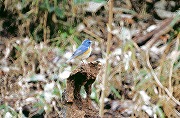 ョウビタキのかすかな声がして道端の杭に止まった。藪の中に動きを感じ見るとシメがいた。狐久保にくると数人がカメラを構えている。その先にしばらくするとルリビタキが止また。ルリビタキは幕山で何年も前に見て以来で久しぶりである。青と黄が美しい。その背後にシロハラも出てきた。