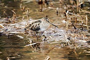 きざはし池にくるとここでも何人もカメラを池に向けている。その先にはオオジシギが水中に長い嘴を入れ餌を漁っている。ツグミも近くにいる。そのうちジョウビタキ♂も近くに飛んできた。しばらくすると前方の木の枝にモズ♂も止まった。
