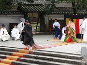最後の写真は、神社境内で執り行われていた、御内裏様と十二単衣お雛様による桃の節句のお祭りです。下鴨神社では1月4日のけまり始め、5月15日の葵祭り、秋の十五夜の名月管弦祭等の催しがあり、見応えがありそうですので、皆さんも是非訪れてみて下さい。