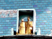 皇居に参った時に、今井兼次さん設計の桃花楽堂のお雛様を見つけまし た。 微笑ましく仲良く寄り添っていますので、シャッターを押してみました。 以上