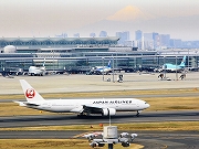 ①遠くには: 富士が霞んで見えました。 @JAL国内線ビル屋上
