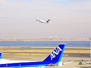 ②デパーチャ: 高揚感とともに出発。東京ゲートブリッジが遠くに見えます。 @ANA国内線ビル屋上