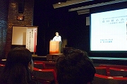 表彰式の後「個性豊かな独自の書を表現するには」と題して幕田魁心先生の講演があり、最初は漢字をやっていたが読める日本語の書を書きたいと日本語の詩や文を書くようになったとお話しになりました。