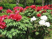 二の丸広場前牡丹園の花は全部で数百株あり、例年より1~2週間早く満開で、5月上旬頃までが見頃との係員の話です。