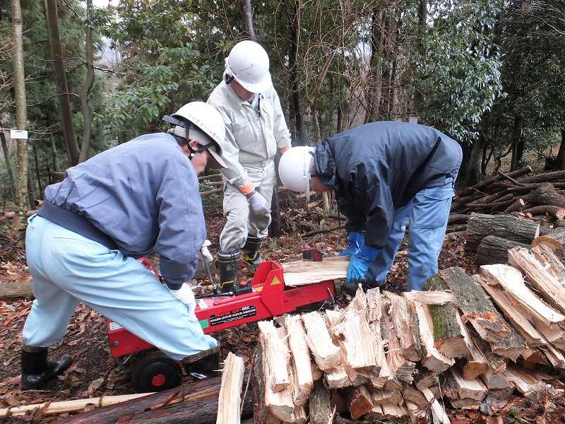 薪割り : 橋本(左)、高井(中)