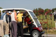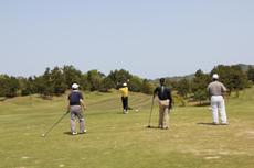 カートの説明を受け、全員で記念写真を撮り、いざ、ティオフ。