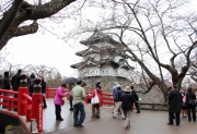 岩手県北上市は五分咲きでしたが、弘前城と角館は一部が咲いているだけで、きれいに撮れていませんが、東北三大桜名所を観て下さい。