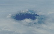 富士山は絵画でも写真でもハマる人から敬遠する人まで多彩ですが、この日本一高い霊峰は裾野が広いせいか、どこから見ても正面に見える不思議な山です。 絵画では葛飾北斎、林武、片岡球子等々、富士を対象に個性溢れる浮世絵、油絵、日本画が多くあります。 ①雲に埋もれ; 存在感があります。 2010年10月、台湾への往路。 ②薄い雲の中; 薄化粧したように。 2013年1月、宮崎からの帰路。 ③くっきりと; 定番中の定番ですが 。2012年1月、逗子・披露山公園。 以上