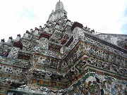 ワット・アルン(暁の寺)はチャオプラヤー川の河岸に建てられた古刹ですが、三島由紀夫の小説「暁の寺」の舞台になった寺で渡し船から遠目で見ると荘厳な寺です。