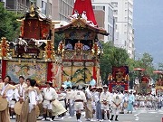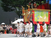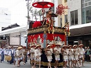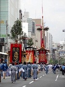 日本三大祭りのひとつである祇園祭のハイライト、山鉾が都大路を巡行、経路は四条通→河原町通→御池通の新町御池です。投稿写真撮影のため、32℃と暑い京都市内のコースを巡ってきました。