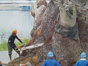 写真2) 分割切断中の楠の木