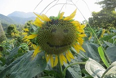 秦野市の公園に散歩に行ったらひまわりの花が綺麗でした。 その中でかわいらしいひまわりを見つけました。 「この猛暑 ひまわり君も つかれ気味」