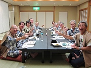 テニスの後は、程よく疲れた体を、天然のヨード温泉「古代海水の湯」に浸かり体を芯から温め至福の時を過ごした後、早速大部屋に集合して飲み会。恒例の宴会、更に二次会と続き、宴会でのビールとお酒に加え、持ち込みのワイン、焼酎をたっぷり頂きました。 平均年齢約70歳のメンバーの一部は飲み過ぎと疲れで半分寝ながらも年齢を忘れ万年青年そのものの話題で楽しい夜を過ごしました。