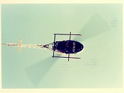 空には、低空飛行のヘリコプターが飛んでいます。
