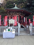 辺津宮の隣に建っていますのが「奉安殿」(写真③)、ここに名高い「弁天様」が祀られています。弁財天は2体、「八臂(はっぴ)弁財天」と「妙音弁財天」(裸弁財天)です。前者は、インドの面影を強く残した戦勝祈願(頼朝が勧請)の像(県の重要文化財)、後者は、女身で芸能・音曲上達祈願の像、と異なる信仰の対象となっています。「知らざあ言って聞かせやしょう」の歌舞伎「弁天小僧菊之助」は「裸弁天」からとった「二つ名」でしょう。