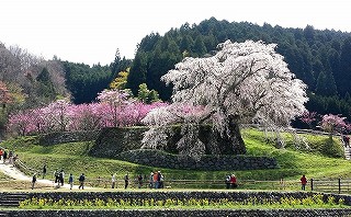 「奈良県宇陀市の山中に、樹齢300年とも伝わる枝垂れ桜があると聞き行って きました。 NHK大河ドラマ「葵・徳川三代」のオープニング映像に使用されてから有名になったとのこと、沢山の観光客でした。 後藤又兵衛と云う豊臣家の武将が、余生を過ごした屋敷跡にあることから、この名前で呼ばれいてるとのことでした。」 以上