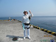 5月31日(土)この日も真夏の陽気、多少風があったが釣り日和。早目の朝食後、野伏港の桟橋組(新谷、小川、横道)と孫市の磯組(大内、中野、)に別れ終日竿を出した。