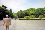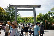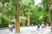 内宮へは伊勢市駅よりバスに乗り10時頃宇治橋(全長101.8mの純日本風木造反り橋)につく、宇治橋鳥居前が大勢の参拝者でいっぱい写真を撮るのに苦労する。橋より五十鈴川を望むと澄んだ水がゆったりと流れ岸辺の緑の中に日の丸がひるがえっているのが印象的であった。コサギが遠くに見える。