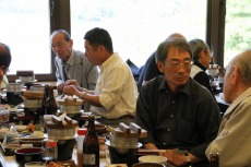 昼食は河口湖畔の食堂で豪華な五目釜飯。バスの中で充分飲んだのに、ここでもまたビール。ひとりコップ1杯程度に抑えているのは、さすが前・後期高齢者群。