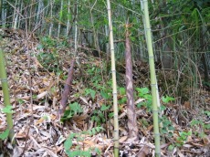 知り合いの山東の農家の方から、春になると「農業の跡継ぎが無く、手が回らないので、欲しいだけ掘って持って帰りや」と電話を戴くので、家内と一緒に掘って持ち帰り、知人や近所にお裾分けしています。年によっては先客(猪)に先を越される場合が有ります。 お陰で筍の掘り方、鍬の使い方や筍についての知識を得る事が出来ました。