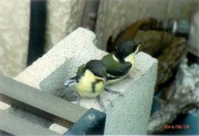 框のブロックにシジュウカラが巣作りし、昨年は 5羽 今年は 8羽同じ巣から巣立ちしました。