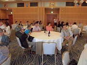 今回も、引き続き多くの女性が駆けつけて頂き、さらに初参加者が10名となり、何十年ぶりの再会となりました。受付を終え、何処のテーブルも着席する前の第一声は「ワー・・・お久しぶり」・「お元気ですか」との挨拶が交わされる状況でした。