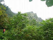 小雨も上がり霧が晴れ、向こうに守門岳らしい山が見えた。八十里越は越後山脈を縫っている。ようやく鞍掛峠に、少し田代平に寄り道して会越国境の木の根峠に着いた。