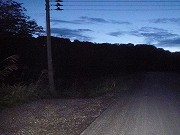 みどりの回廊説明看板の前から国道289線予定道路に登る。東天の木陰から雲間に半月が上がった。舗装道路をヘッドランプ頼りに随分歩いてようやく入叶津ゲートに到着した。吉ノ平から12時間半も掛ったことになる。