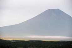 天気予報通り、河口湖、西湖、精進湖とも曇り空で目的地の富士宮(富士山に昇る中秋の名月の撮影スポット)でも富士山はモノトーンでしたが、しばらくすると一条の光が射し、このような感動的な富士山が現れました。