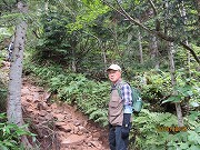 (写真3)足場の悪いガレ場が延々と続き、すれ違う元気のいい山オバサンに「あと