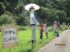 長野県の白馬から長野市に向け山岳のワインディングロードである国道406号線をドライブ。鬼無里(きなさ)の農道にて「かかしコンテスト」を見かけた。 大賞作品はまるで本物の農夫が座っているようだ。傑作ぞろいの案山子に、実った稲をついばみに来たすずめたちも、さぞかし驚いたことだろう 以上