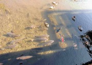 アオサギ、ヒドリガモ、カイツブリ、カワセミ、キンクロハジロ、カルガモ、鯉と水鳥。