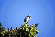 ふれあいステージから水面を覗くと鯉が沢山泳いでいた。近くの池に来ると数人がカメラを向けていたので見ると池縁の葦の中に隠れるようにカワセミが止まっていた。早速シャッターを切りしばらくして来てみるとまだ止まっていた。カワセミはここの代表的な鳥のようで他でも見ている。しらかし広場で弁当を使っているとアオサギが木の上に止まった。早速カメラを向けたが青空がバックの場合難しい、条件を変えて何回もシャッターを切る。