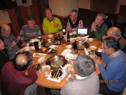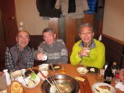 今年も相変わらず年齢を感じさせない面々9名がダブルスの試合を3時間半ほど楽しみ、品川港南口での居酒屋での宴会となった。和食には珍しい円卓で、もつ鍋をつつきながら、よく食べ、よく飲み、よくしゃべり、わいわい、昨年のフォローアップと新年の目標を発表していった。
