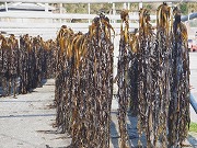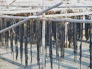 例年2月に入ると養殖ワカメの収穫が始まります。11月末、綱に種付けを行い真冬の海で2か月経過すると、人間の背丈に成長します。 写真は綱共々引き揚げて浜辺にて自然乾燥させているものです。なお生のワカメの香りを届けることが出来なく残念です。 場所は和歌山県日高郡由良町衣奈で、乾燥ワカメ、塩ワカメ等として出荷されています。 写真1 干したてのワカメ 写真2 乾燥したワカメ 写真3 金具でワカメを外す 写真4 ムシロの上で仕上げ干し 写真5 浜の干場の様子 以上
