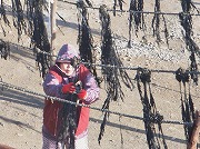 冬の浜風景“養殖ワカメの収穫”