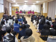 邦楽演奏グル-プ「織音」が、今年最初の邦楽体験教室を開催しましたのでご紹介します。1月30日有田郡湯浅小学校で6年生2クラス(72名)を対象とした邦楽体験教室です。毎年3~4回有田市周辺の小学校の招きで、音楽授業の一環として、邦楽器の解説・演奏及び邦楽器の実技指導を行っています。