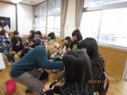 実技指導は各クラス2班に分かれて、琴・尺八の指導を行いました。尺八は音を出すのが、難しかったようですが、お箏は童謡『チュ-リップ』の曲を楽しく練習しました。