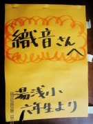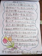 後日、小学校からきれいに色塗りされた、チュ-リップの花の付いた用紙に参加者全員が書いた感想文を届けて頂きました。